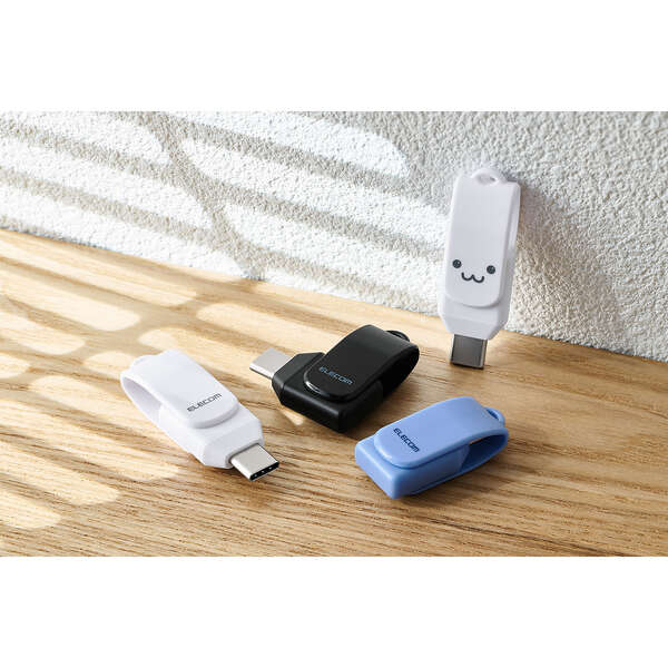 複数のUSB Type-C(TM)対応デバイス間のデータもこれ1つでカンタンに。回転収納式でキャップを紛失する心配がない、USB Type-CコネクターのUSBメモリです。スマートフォンなどに直接挿して動画や画像などの大切なデータをすぐに移動・バックアップできるので、簡単に空き容量を確保できます。