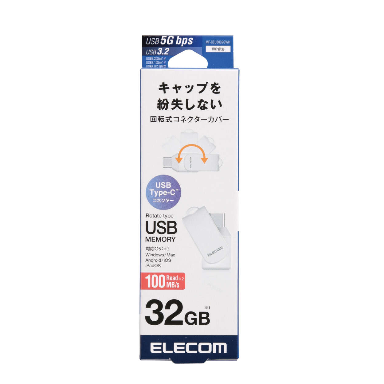 回転収納式でキャップを紛失する心配がない、USB Type-C™コネクターのUSBメモリです。