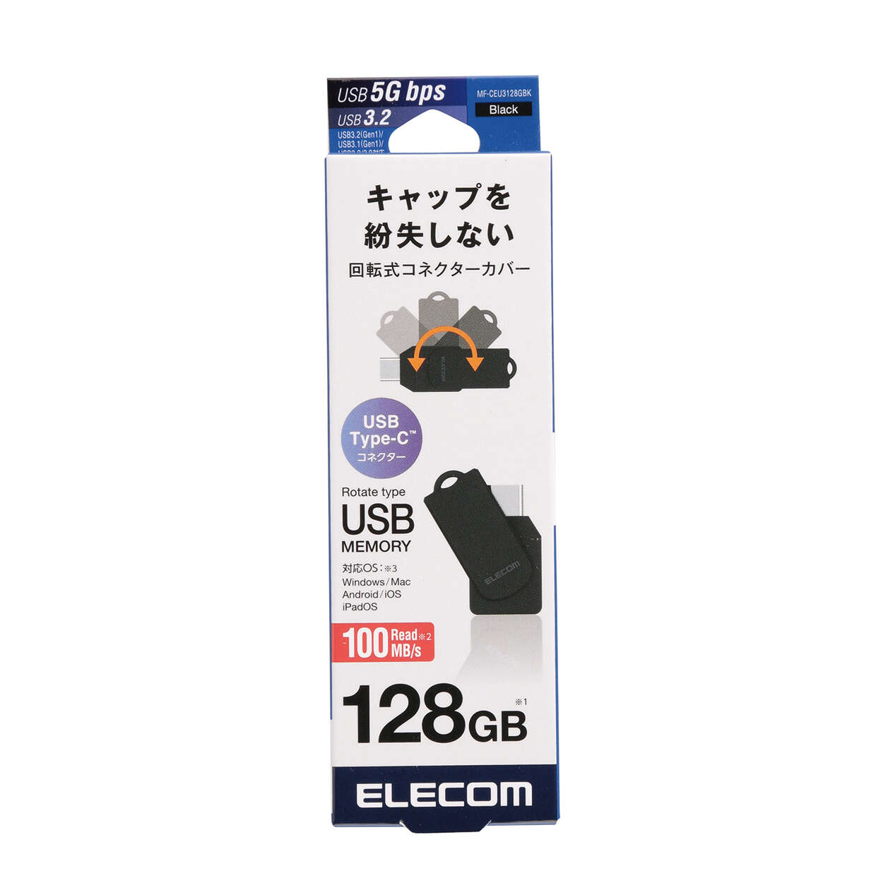 回転収納式でキャップを紛失する心配がない、USB Type-C™コネクターのUSBメモリです。