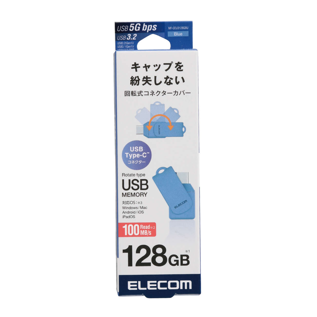 回転収納式でキャップを紛失する心配がない、USB Type-C™コネクターのUSBメモリです。