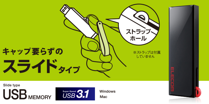 USB3.1(Gen1)/USB3.0対応で、高速データ転送を実現するUSBメモリです。大容量データ、大量のデータでも高速データ転送でストレスなく使用可能です。