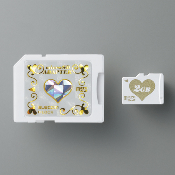 SDカード変換アダプタ付属で、microSDカードがSDカードとしても使用できる。デザインとカラーで選べるmicroSDカード“Loverish(ラブリッシュ)”のSDカード用変換アダプタ付属モデル、“Loverish plus(ラブリッシュ プラス)”。