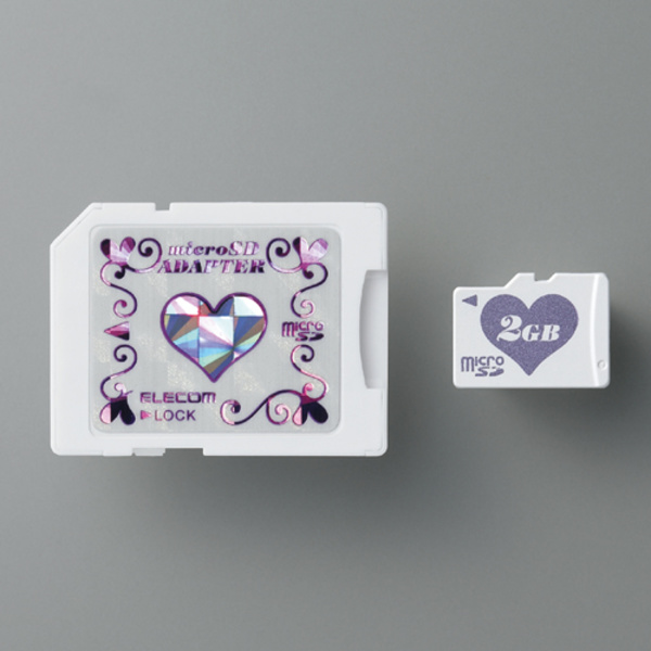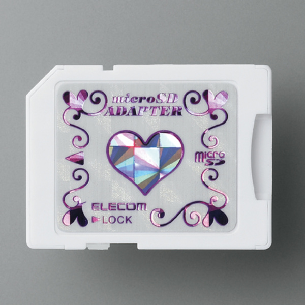 SDカード変換アダプタ付属で、microSDカードがSDカードとしても使用できる。デザインとカラーで選べるmicroSDカード“Loverish(ラブリッシュ)”のSDカード用変換アダプタ付属モデル、“Loverish plus(ラブリッシュ プラス)”。