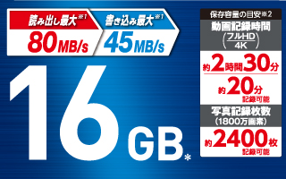 ※UHS-Iインターフェース対応機器で使用したとき読み書き時のデータ転送速度