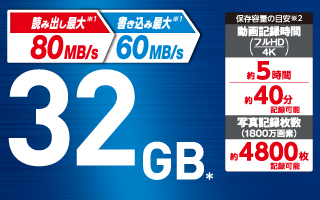 ※UHS-Iインターフェース対応機器で使用したとき読み書き時のデータ転送速度