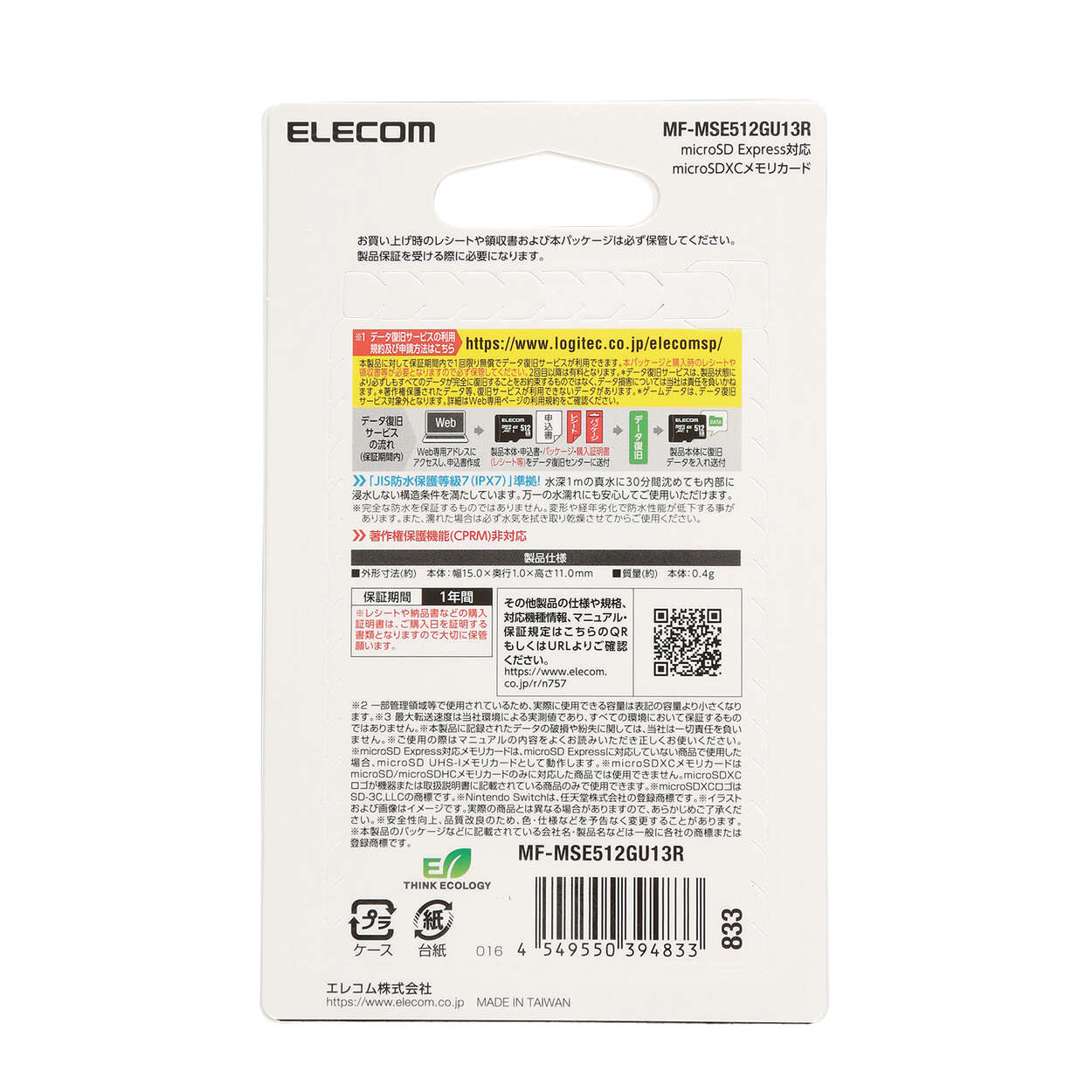 エレコムのデータ復旧サービス付きSDカードなら、もしデータが消えてしまっても復旧サービスが受けられます。※詳しい利用規程は製品のパッケージをご確認ください。