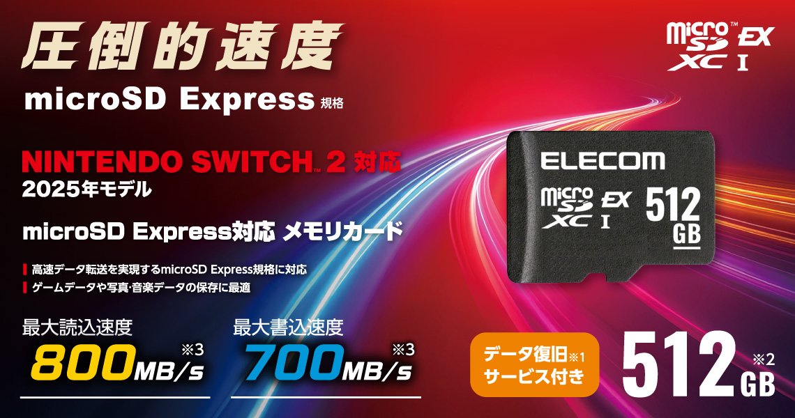 NINTENDO SWITCH™ 2 のデータを高速に転送できる、microSD Express規格に対応したメモリーカードです。NINTENDO SWITCH™ 2 2025年モデルでの対応検証済み製品です。