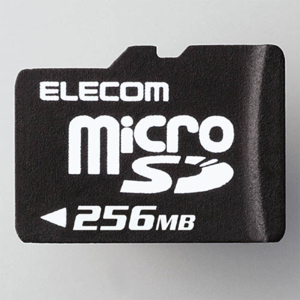 CPRM技術を採用した著作権保護機能搭載のmicroSD。転送速度6.5MB/secのスタンダードモデル。256MBの容量。