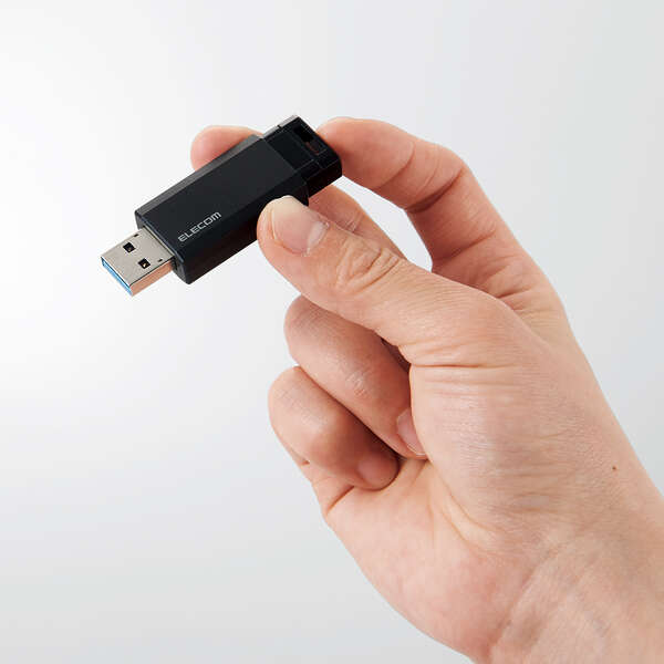 片手でワンプッシュのラクラク接続!ノックで出して自動で収納できる、ボールペンのようについつい押したくなるUSB 5Gbps(USB3.2(Gen1))対応ノック式USBメモリです。