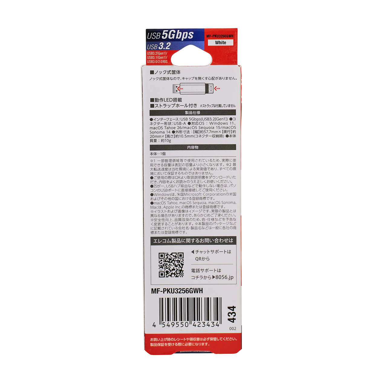 USB 5Gbps(USB3.2(Gen1))対応で、読み込み時の最大データ転送速度100MB/sを実現しています。