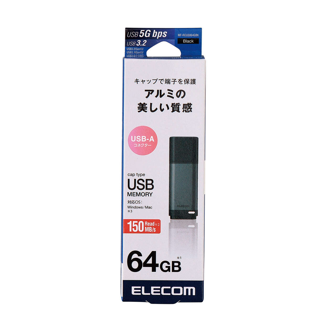 USB USB 5Gbps(USB3.2(Gen1))対応で、読み込み時の最大データ転送速度150MB/sを実現しています。大容量データ、大量のデータでも高速データ転送でストレスなく使用できます。