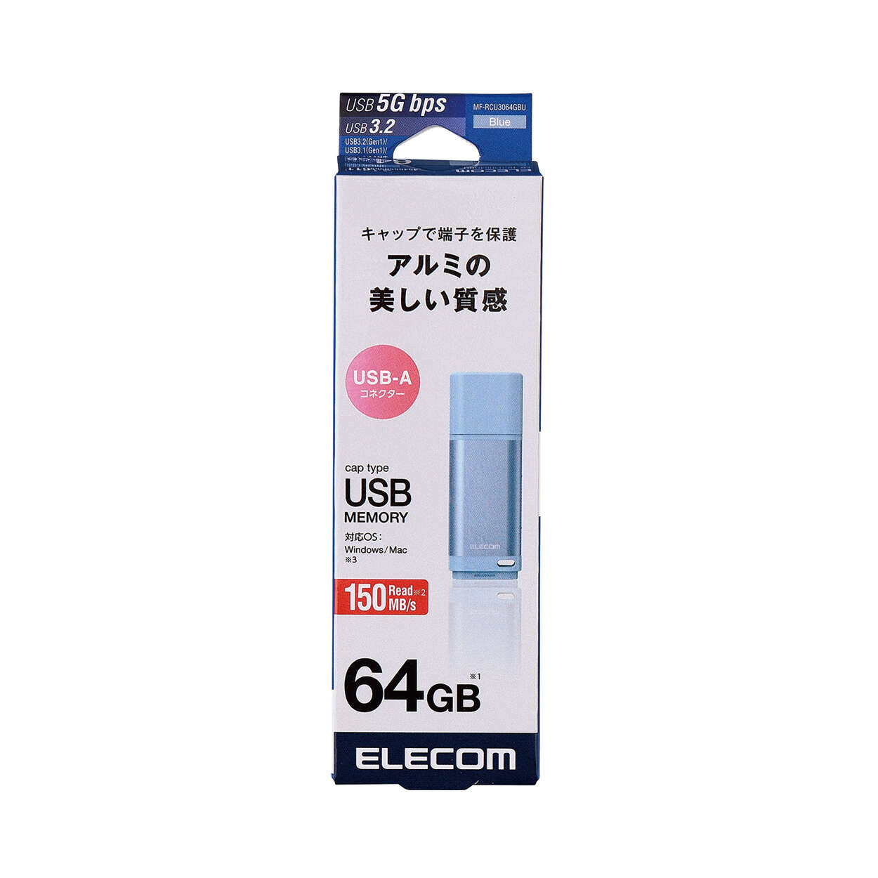 USB USB 5Gbps(USB3.2(Gen1))対応で、読み込み時の最大データ転送速度150MB/sを実現しています。大容量データ、大量のデータでも高速データ転送でストレスなく使用できます。