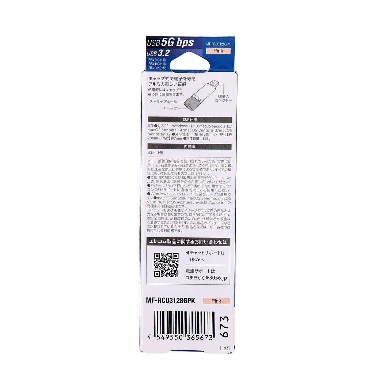 USB USB 5Gbps(USB3.2(Gen1))対応で、読み込み時の最大データ転送速度150MB/sを実現しています。大容量データ、大量のデータでも高速データ転送でストレスなく使用できます。