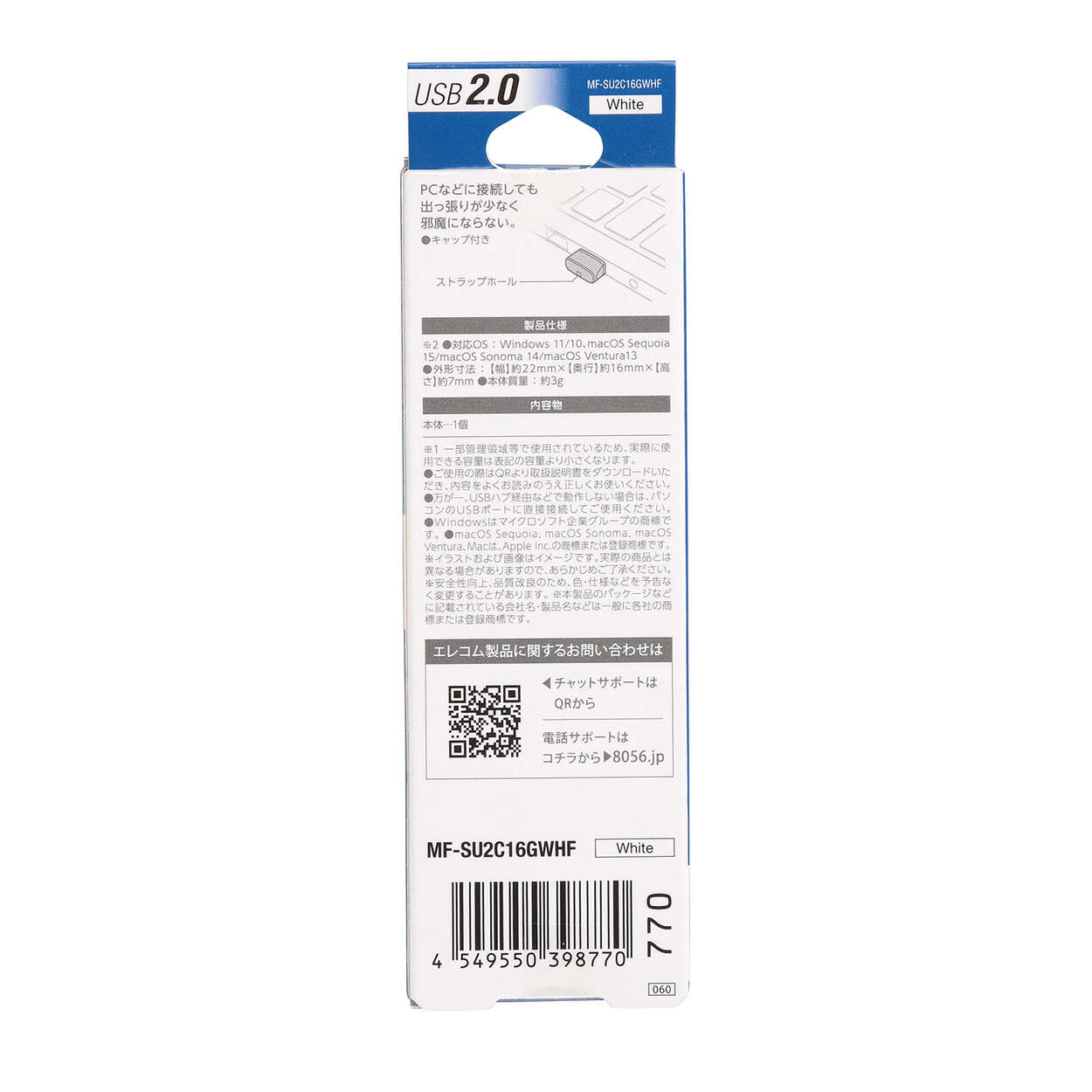 パソコンに装着したままでも邪魔にならない、USB2.0対応USB-Aコネクターの小型USBメモリです。