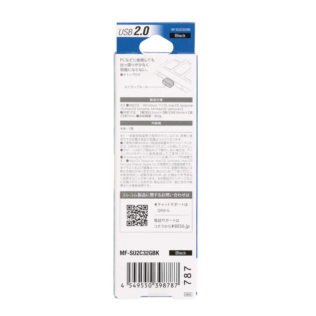 パソコンに装着したままでも邪魔にならない、USB2.0対応USB-Aコネクターの小型USBメモリです。