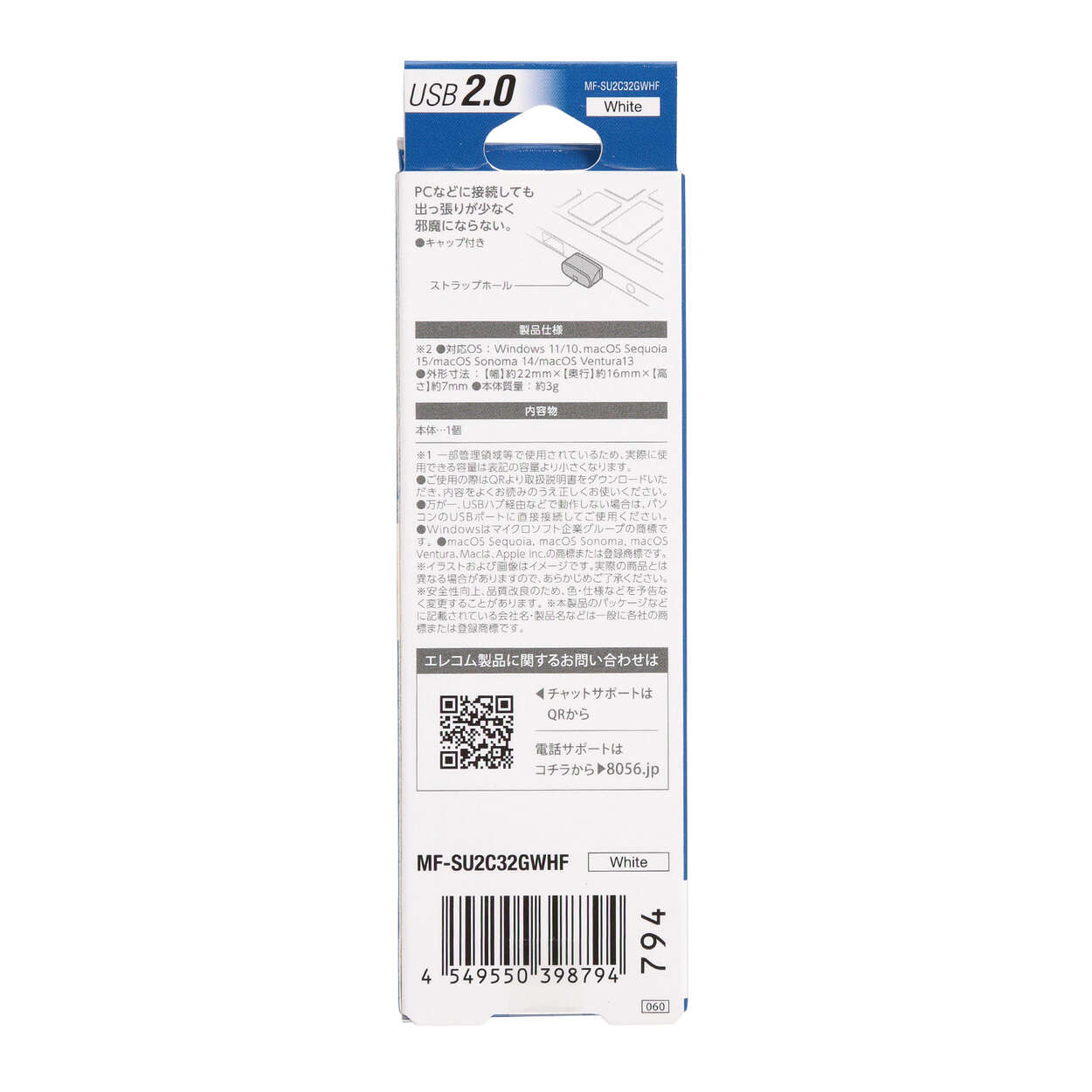 パソコンに装着したままでも邪魔にならない、USB2.0対応USB-Aコネクターの小型USBメモリです。キャップ式でゴミやホコリの侵入からコネクターをしっかり保護できます。