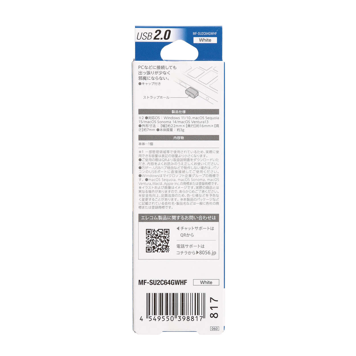 パソコンに装着したままでも邪魔にならない、USB2.0対応USB-Aコネクターの小型USBメモリです。
