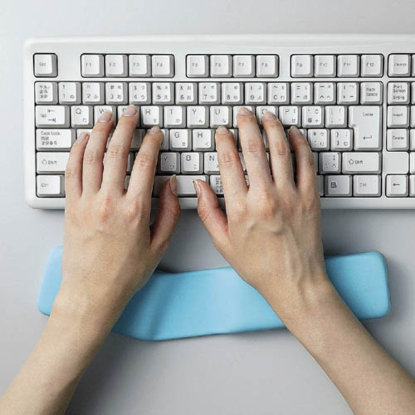キーボード操作時の自然な手首の角度22°に合わせたハンドレストです。操作距離が長い右手に合わせ、右側が長い設計です。