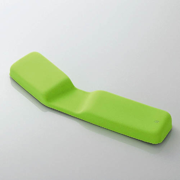 キーボード操作時の自然な手首の角度22°に合わせたハンドレストです。操作距離が長い右手に合わせ、右側が長い設計です。