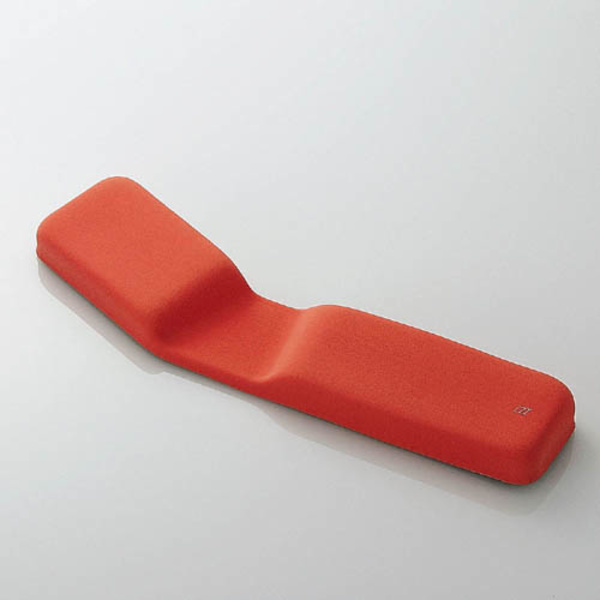 キーボード操作時の自然な手首の角度22°に合わせたハンドレストです。操作距離が長い右手に合わせ、右側が長い設計です。