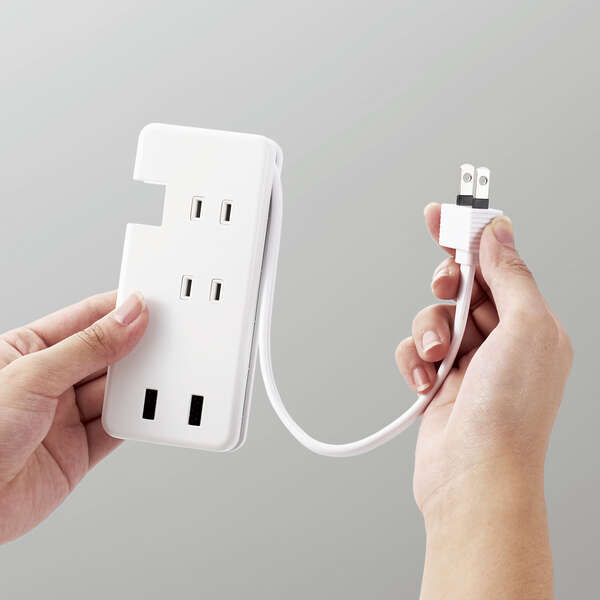 片面に2つ、もう片面に1つの合計3つのAC差込口と、2つのUSB-Aポートを備えたモバイルUSBタップです。