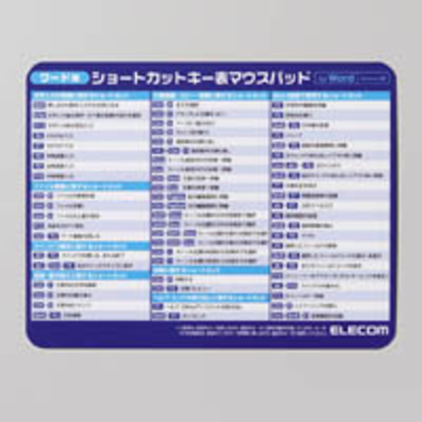 ショートカットを使ってスピードアップ!初級者から中級者まで意外と知らないショートカットを満載した便利なマウスパッド。Microsoft Office 2007 にも対応。