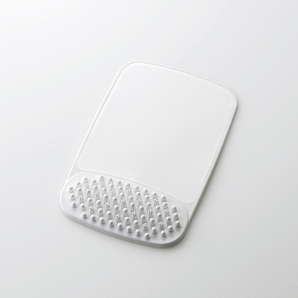 ハンドレスト部の2種類の突起が手のひらにほどよい刺激を与える、ソフトタイプの気持ちいいマウスパッド。