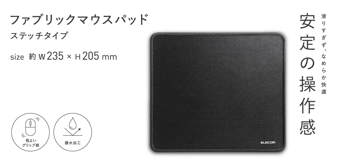 布地の表面素材はなめらかで滑りすぎず、安定した操作感を実現します。