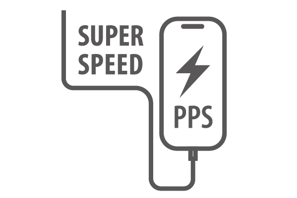USB Power Deliveryとは、アダプターと接続機器間で情報をやり取りすることで、その機器間における最適な電力を選択し、高速充電を実現するUSB規格です。PPS(Programmable Power Supply)とは、0.02V単位で電圧を調整し、最適な電力で効率的に供給することができるUSB Power Deliveryのオプション規格です。