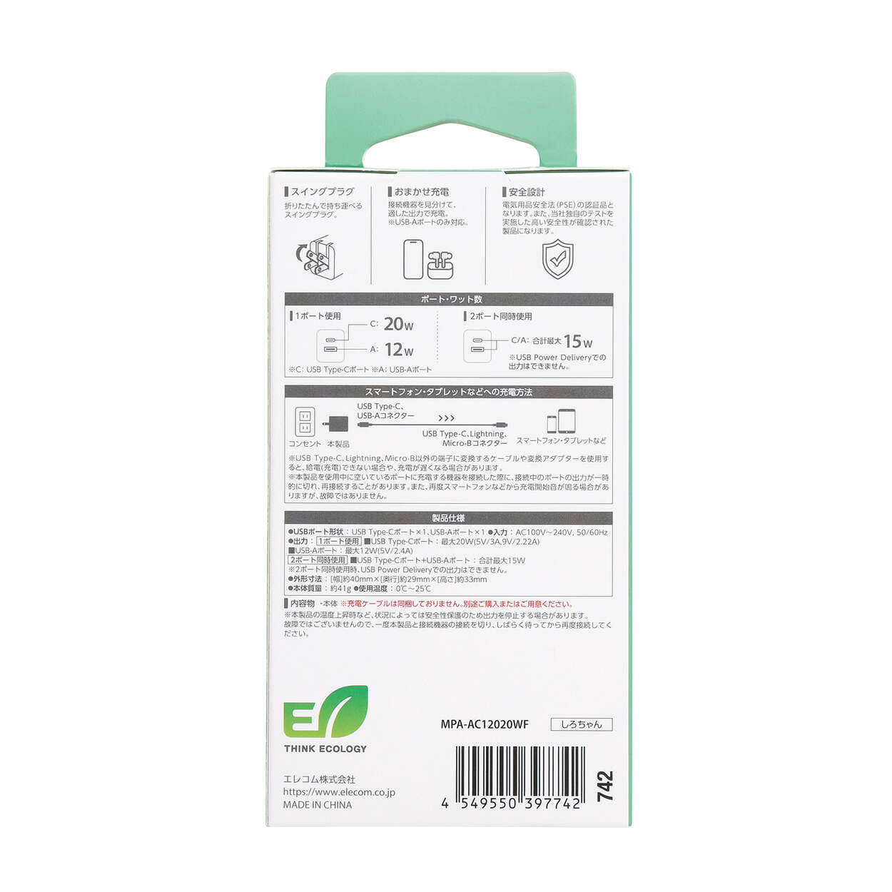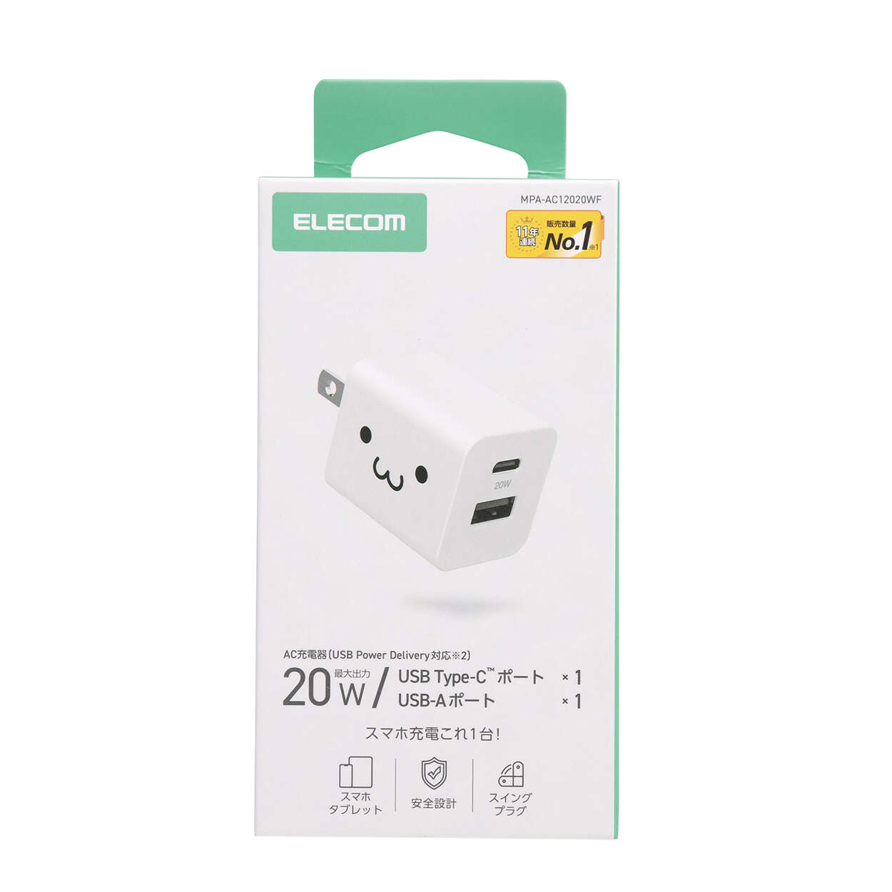 スマートフォンやタブレットなどの充電を、これ1台で。USB Type-C(TM)ポートとUSB-Aポートを搭載し、対応するスマートフォンなどを高速充電できるAC充電器です。手のひらにすっぽり収まるコンパクトサイズと軽量で、外出や出張などの持ち運びに便利です。