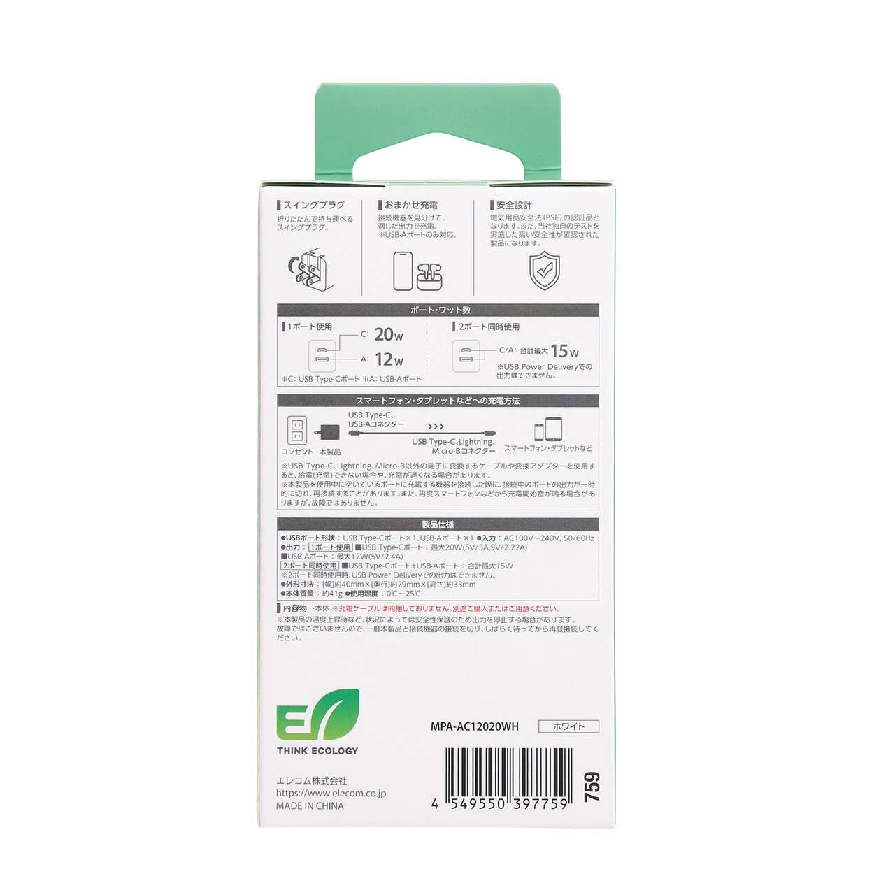 スマートフォンやタブレットなどの充電を、これ1台で。USB Type-C(TM)ポートとUSB-Aポートを搭載し、対応するスマートフォンなどを高速充電できるAC充電器です。手のひらにすっぽり収まるコンパクトサイズと軽量で、外出や出張などの持ち運びに便利です。