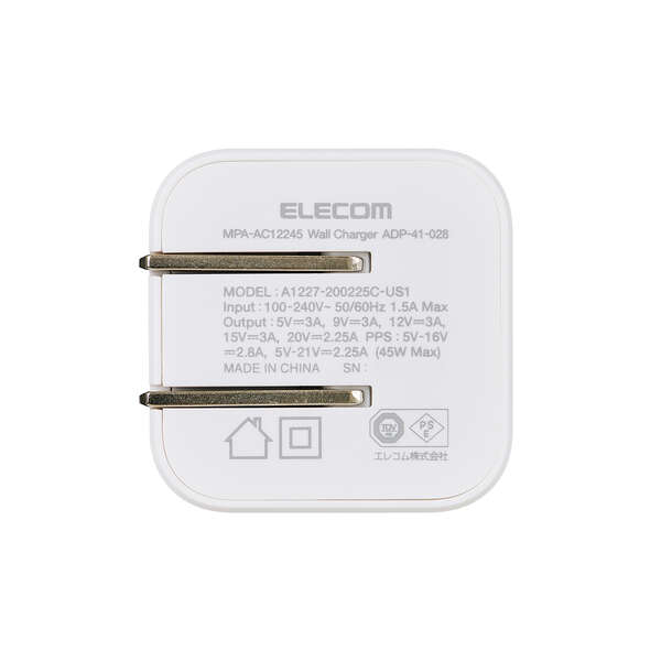 USB Power Delivery最大出力は45Wです。PPS(Programmable Power Supply)最大出力は45Wです。