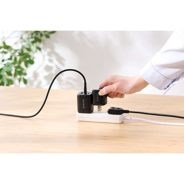 USB Power DeliveryおよびPPS規格に対応。機器に応じて電圧、電流が変化するためスマートフォンやタブレット、ノートパソコンが充電できます。