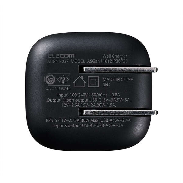USB Power Delivery最大出力は30Wです。PPS(Programmable Power Supply)最大出力は30Wです。
