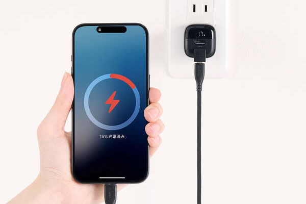 充電状況がひと目でわかる、電力ディスプレイ付きAC充電器です。USB Type-C™ポートとUSB-Aポートを搭載し、スマートフォンやタブレット、一部のノートパソコンを充電できます。