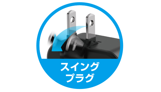 未使用時は電源プラグを折りたたんで充電器本体に収納可能です。スッキリとコンパクトに収納できるので、持ち運びにも便利です。