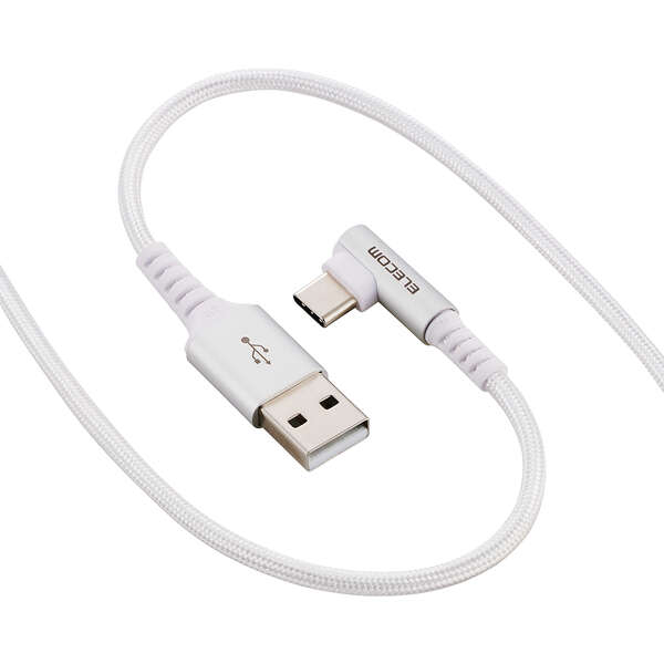 L字コネクターの採用により、飛び出しが少ないスッキリした配線が可能。USB-A端子を搭載したパソコン・充電器と、USB Type-C(TM)端子を搭載したスマートフォンなどの接続ができるHi-Speed USB(USB2.0)ケーブルです。