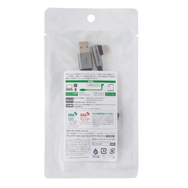 USB-A端子を搭載しているパソコン及び充電器・モバイルバッテリーなどに、USB Type-C™端子を搭載しているスマートフォンやタブレットを接続し、充電やデータ転送ができるUSB2.0ケーブルです。