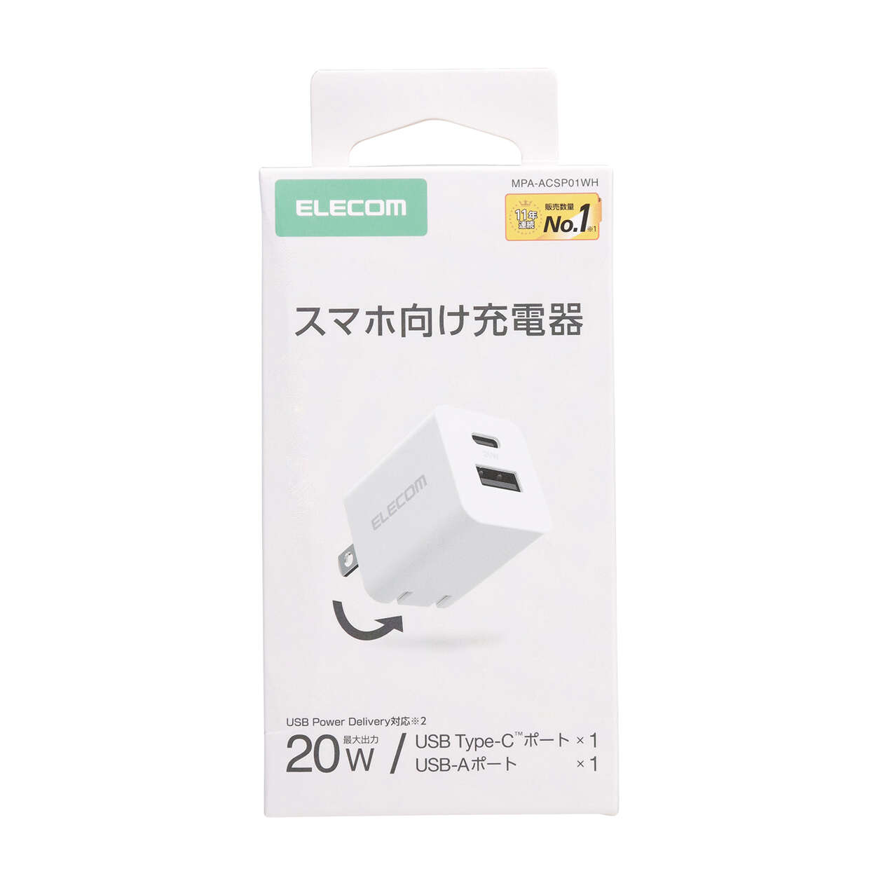 スマートフォンやタブレットなどの充電を、これ1台で。USB Type-C(TM)ポートとUSB-Aポートを搭載し、対応するスマートフォンなどを高速充電できるAC充電器です。手のひらにすっぽり収まるコンパクトサイズと軽量設計で、外出や出張などの持ち運びに便利です。