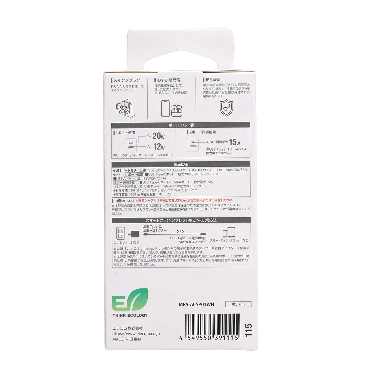 USB Type-C™ポートやUSB-Aポートを搭載し、それぞれのポートに対応するスマートフォンやタブレットなどでも別々のAC充電器を用意することなく、これ1台で充電できるAC充電器です。