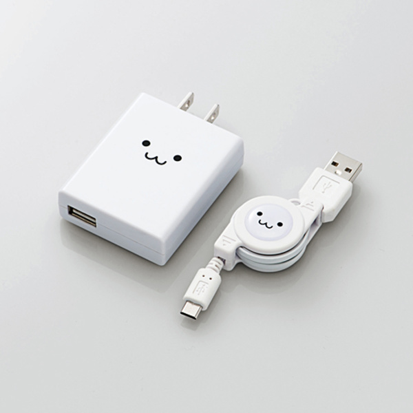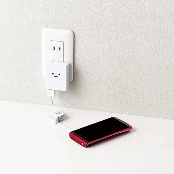 持ち運びに便利なケーブル巻き取りタイプ!電源プラグが収納できるMicro-USBケーブル付きスマートフォン用AC充電器。