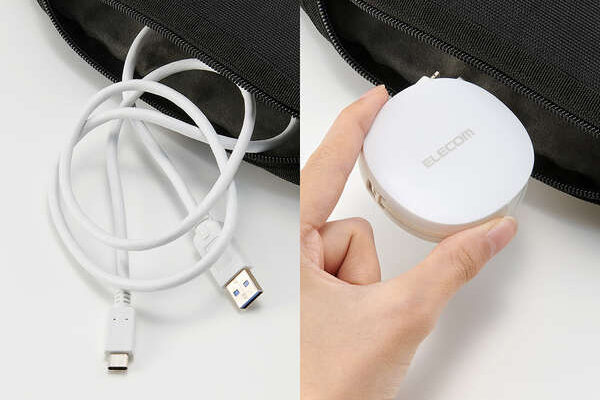 ケースはコンパクトで軽く、持ち運びに便利。コネクターごと収納できるから、かばんの中でねじれたり断線したりすることもありません。
