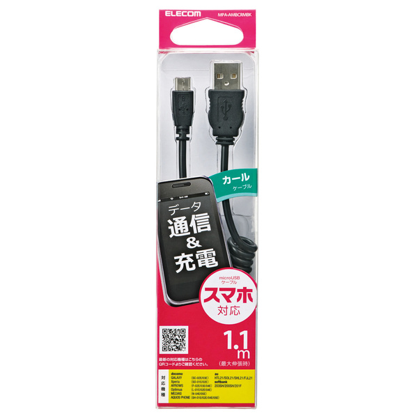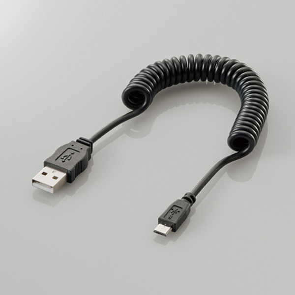 必要な時だけケーブル長が伸びるカールケーブルタイプ!スマートフォンの充電・データ通信に最適なMicro-USBケーブル。