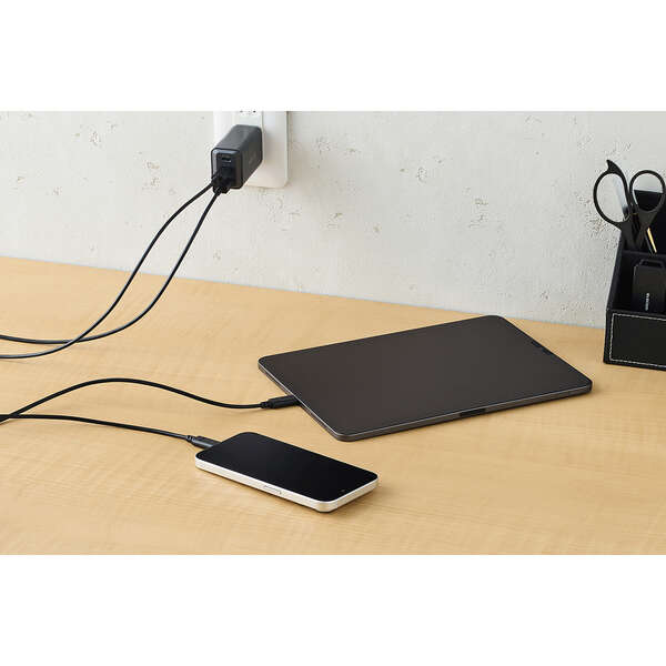 スマートフォンやタブレットの充電やデータ転送に!USB2.0に対応。USB-A - USB Type-C(TM)ケーブル、USB Type-C - USB Type-Cケーブルの2種類のケーブルセットです。