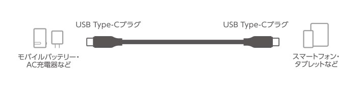 AC充電器やモバイルバッテリー、スマートフォン、パソコン、タブレットなど、USB Type-Cポート搭載の機器同士を接続して、充電やデータ転送ができます。