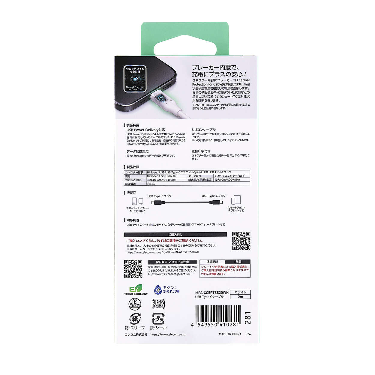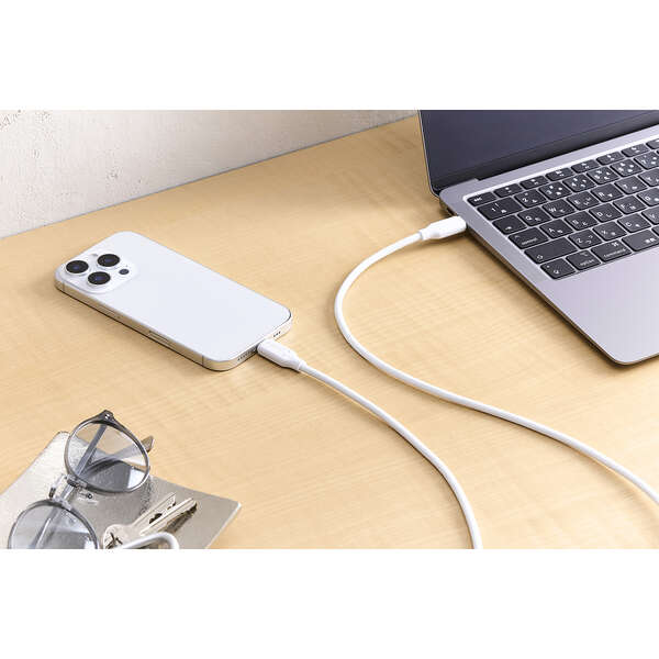安心と使いやすさを両立!異物の挟み込みや水濡れなどの意図しない接続によるショートや発熱・発火を検知し、自動で電流を遮断するブレーカーを搭載したUSB Type-C(TM)ケーブルです。なめらかな手触りで、やわらかく扱いやすいシリコン素材を採用しています。AC充電器やモバイルバッテリー、スマートフォンやタブレットなど、USB Type-Cポート搭載の機器同士を接続して、充電やデータ転送ができます。