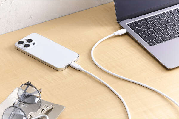 AC充電器やモバイルバッテリー、スマートフォン、パソコン、タブレットなど、USB Type-Cポート搭載の機器同士を接続して、充電やデータ転送ができます。