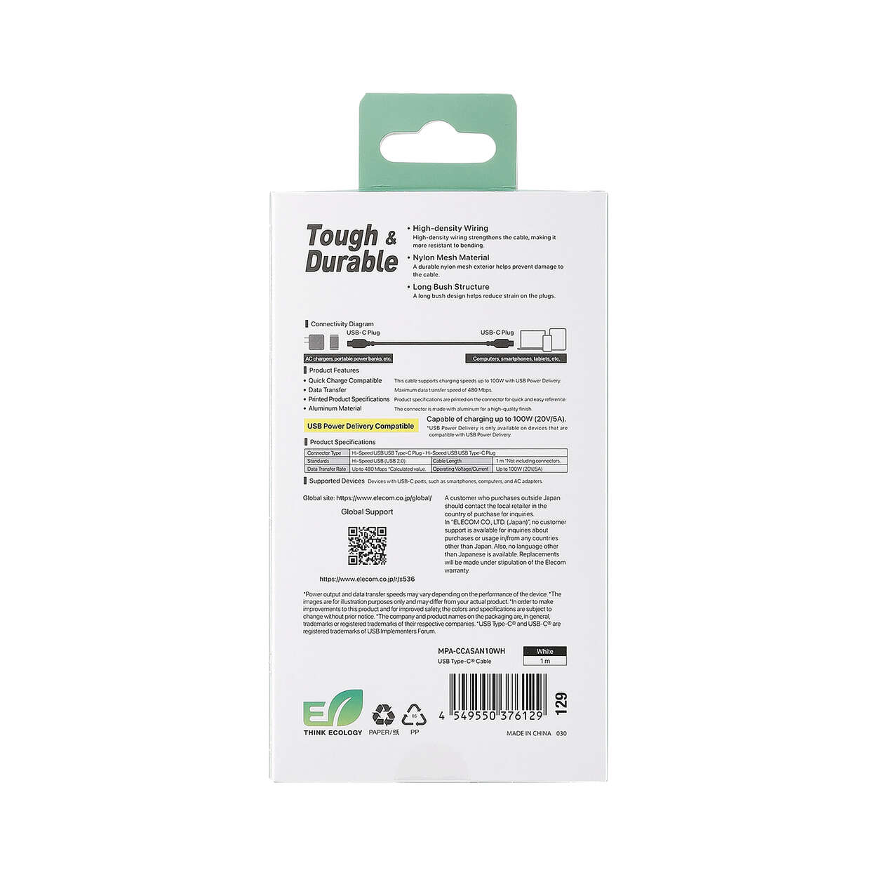 スマートフォンもパソコンも、これ1本で高速充電!USB2.0、USB Power Delivery(最大100W)対応のUSB Type-C(R) - USB Type-Cケーブル。断線に強い高耐久タイプです。