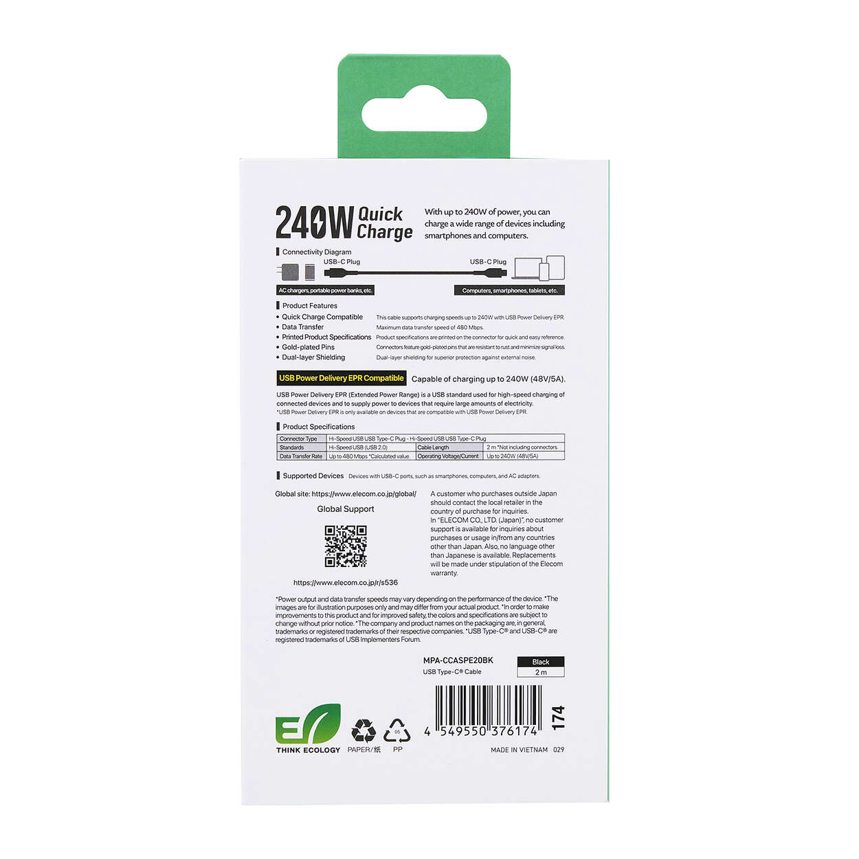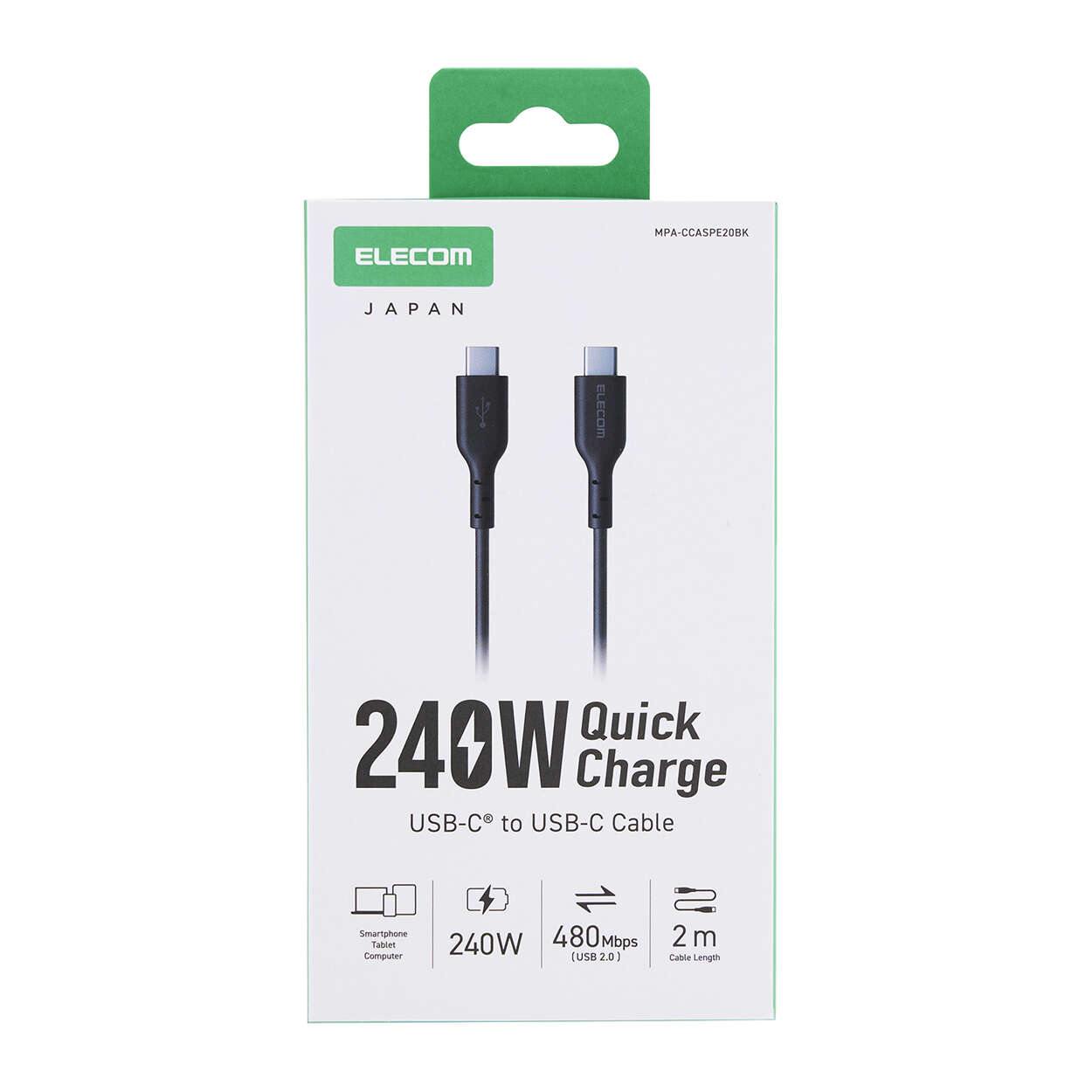 スマートフォンもパソコンも、これ1本で高速充電!USB2.0、USB Power Delivery(最大240W)対応のUSB Type-C(R) - USB Type-Cケーブルです。