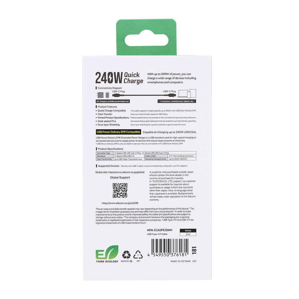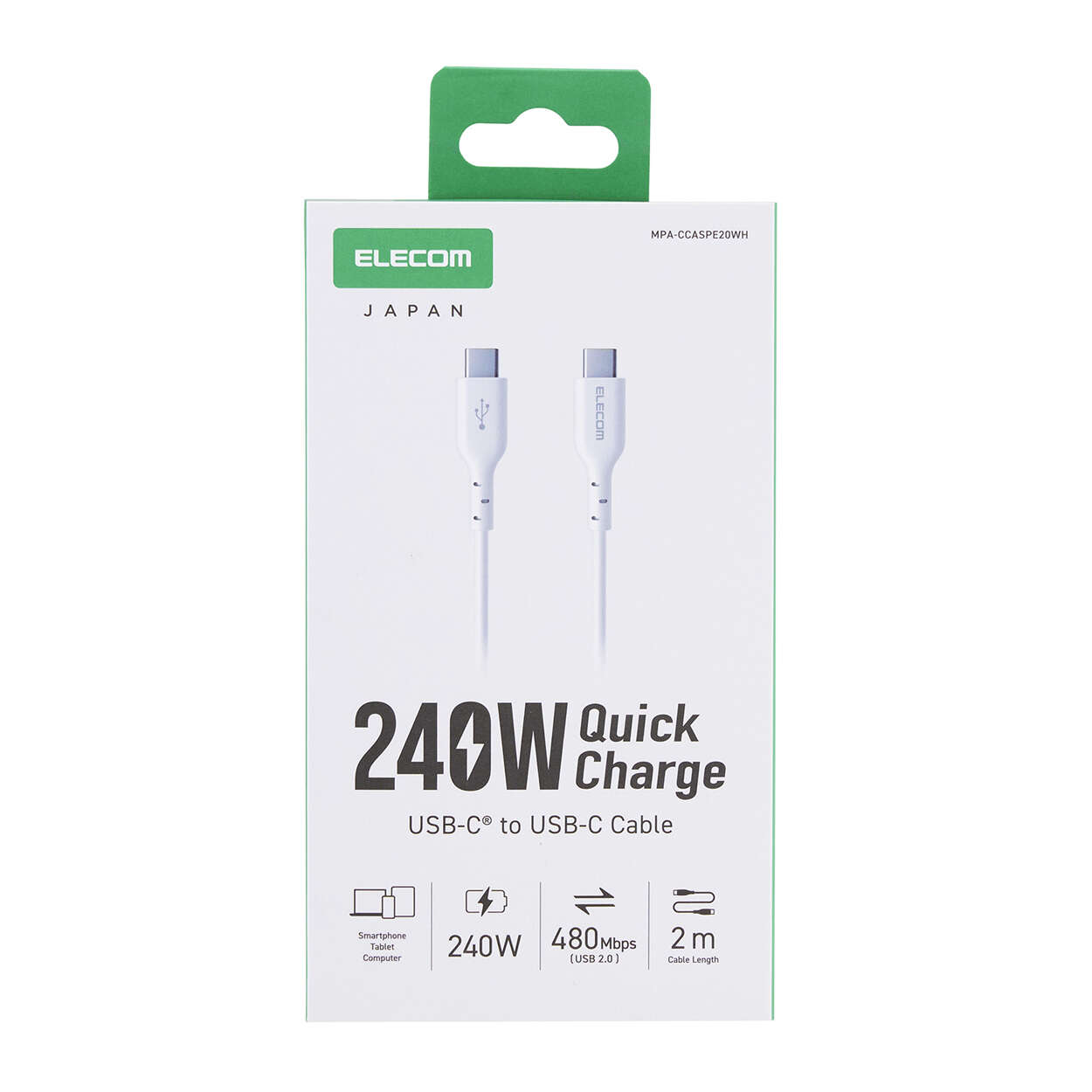 スマートフォンもパソコンも、これ1本で高速充電!USB2.0、USB Power Delivery(最大240W)対応のUSB Type-C(R) - USB Type-Cケーブルです。